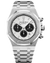 White guilloché dial with three black sub-dials. Minute markers around the outer rim. Luminous hour markers. Silvery hour hands with luminous coating. Central second hand. Date window located between the 4 and 5 o'clock positions. This watch has three sub-dials chronograph : 60 seconds sub-dial at 6 o'clock, 30-minute sub-dial at 3 o'clock, 12-hour counter at 9 o'clock.