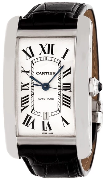 One year warranty for all watches. Preowned- W2609956 Cartier Tank Americaine XL 18K White Gold Men's Watch