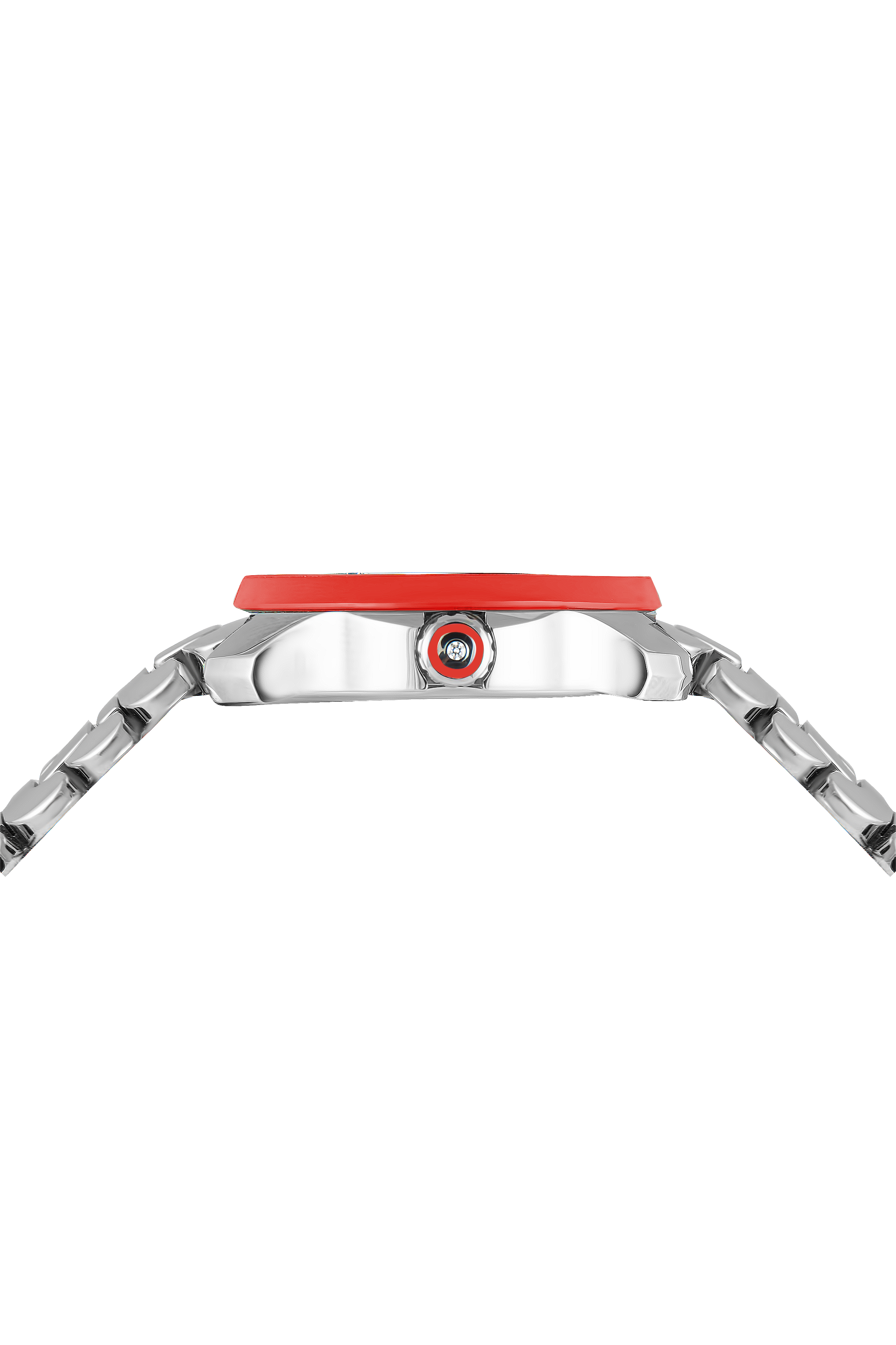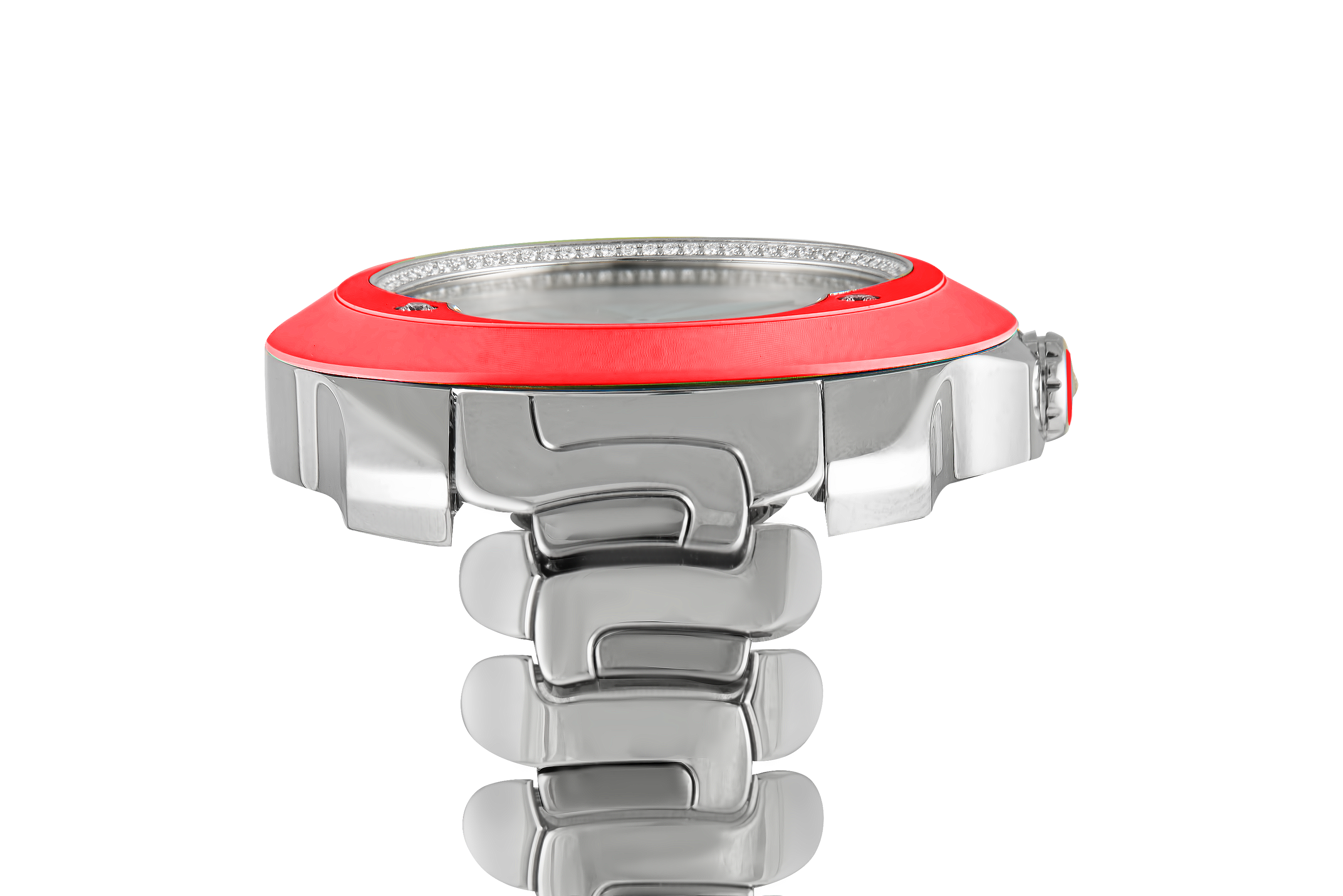 Bold, artistic, and unmistakably refined, the Franc Vila Tribute In Colors Ref. 80Q.SS-NEO.RED brings a unique expression of modern luxury to the wrist. Housed in a polished and satin-finished stainless steel case (41 x 37 mm) with a slim 9 mm profile, this elegant timepiece is adorned with diamonds and a bezel in colored composite, blending contemporary materials with classic sparkle.