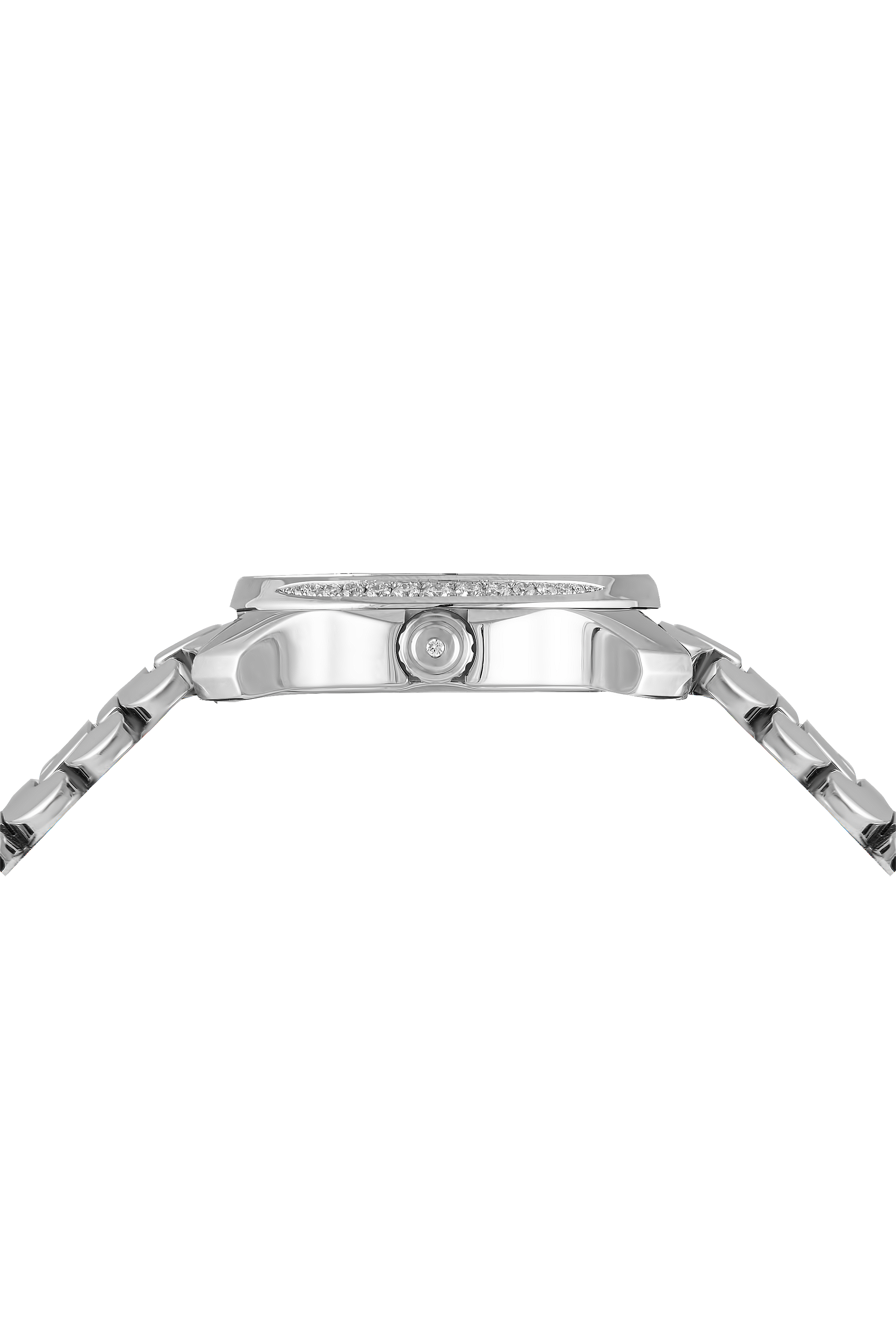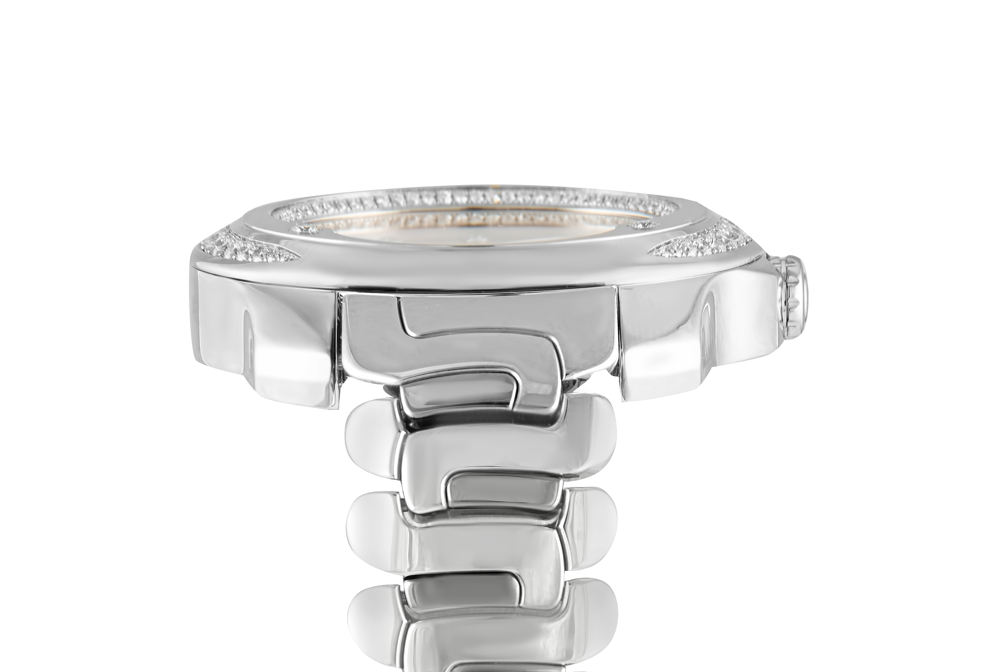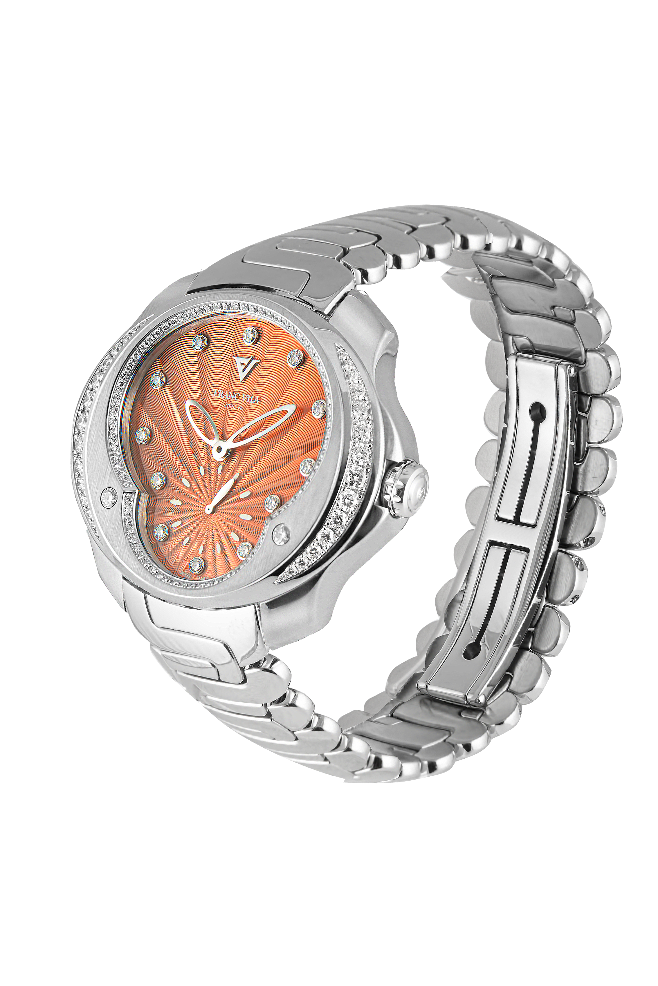 A radiant fusion of elegance and energy, the Franc Vila Tribute To Ladies Ref. 80Q.SS.SL.ORA is a standout timepiece that brings sophistication to vibrant life. This limited edition creation features a uniquely shaped 38 x 37 mm case crafted from polished and satin-finished stainless steel, adorned with shimmering diamonds that highlight the brand’s signature flair for luxurious detail.