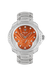 The bold orange metallic dial, enriched with diamond accents and protected by an anti-reflective sapphire crystal, hosts hour and minute hands along with a small seconds subdial at 6 o’clock. At its heart beats the Quartz Calibre FVQ80, offering precision, reliability, and elegance in motion.