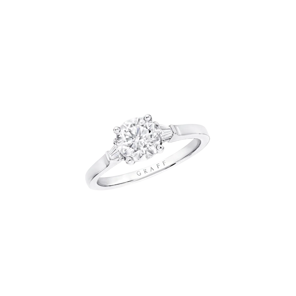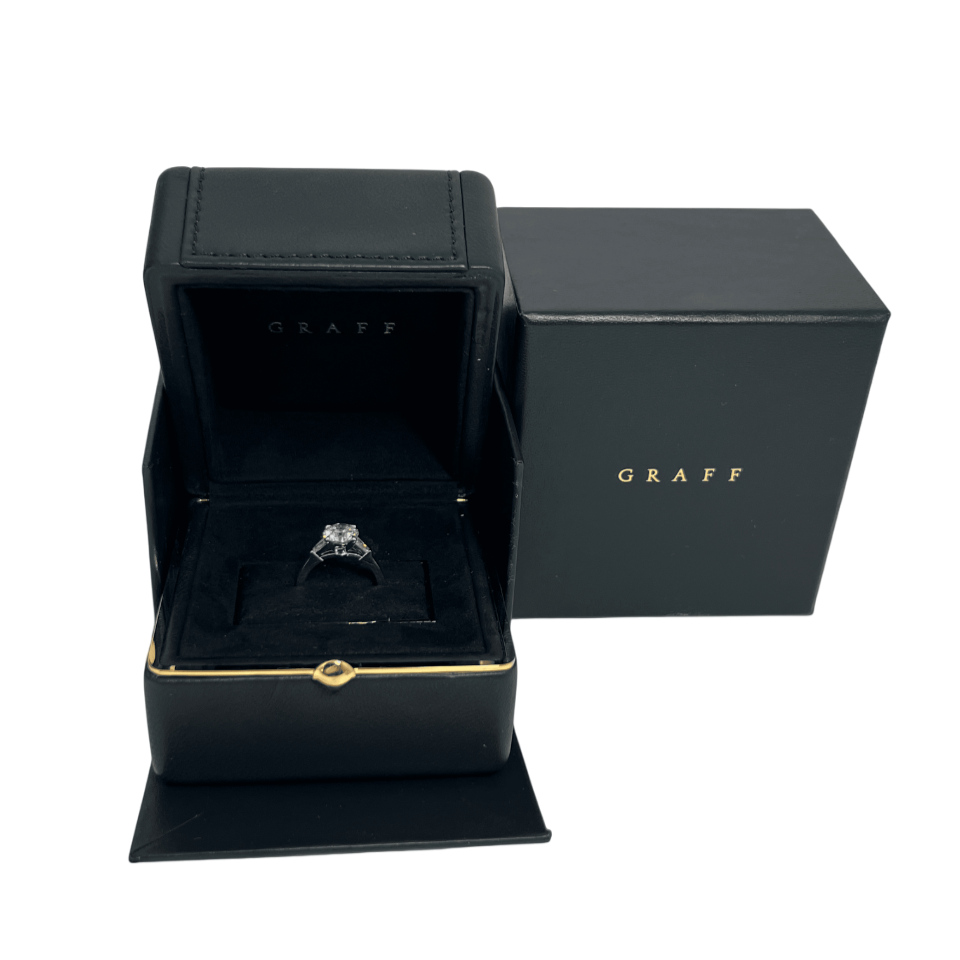 The Graff Promise engagement ring showcases a stunning diamond at its center, set in exquisite platinum. The timeless design exudes sophistication and elegance, making it a symbol of everlasting love. This ring combines luxury and craftsmanship, ensuring a dazzling display of brilliance and a cherished memory forever. Gemstones Details