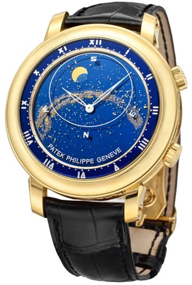 The watch performs following functions: hours, minutes, astronomical clock, star map, moment of Sirius and moon passing through the meridian, phase and orbit of the moon.