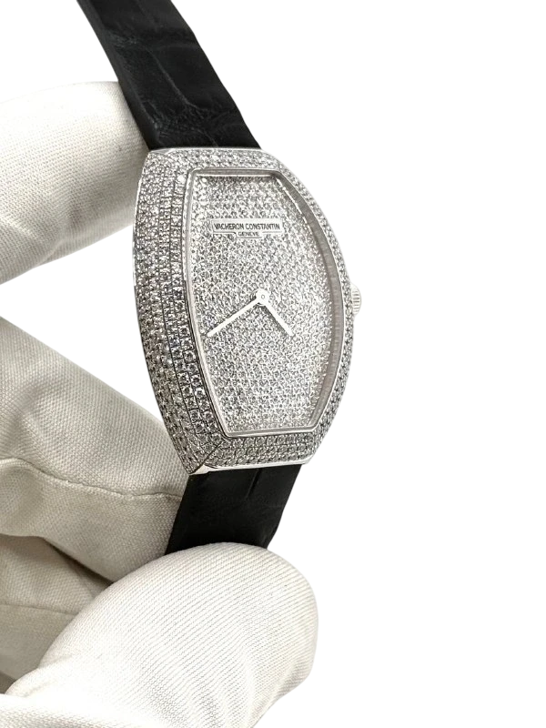 Indulge in the epitome of luxury with the Vacheron Constantin Preowned-25541/000G-9053. This stunning timepiece features a 27.5x37.15 mm 18K White Gold case set with diamonds , that radiates sophistication. Fixed 18K White Gold bezel set with diamonds, enhancing the overall aesthetic. The case is encrusted with 311 white diamonds weighing 2.05 ct.